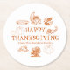 Happy Thanksgiving pumpkin pie custom name Round Paper Coaster