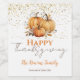 A gorgeous thanksgiving themed party or gift wine label. This fabulous design features rustic fall autumn pumpkins with leaves in warm earthy browns and orange colours. Easy to personalise with your own thanksgiving celebration details.