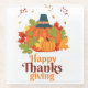 Happy Thanksgiving Pumpkin with Hats and Leaves Glass Coaster