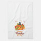 Happy Thanksgiving Pumpkin with Hats and Leaves kitchen towel