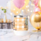 Celebrate the season with this cozy fall design featuring three pumpkins in sage green, tan, and cream surrounded by autumn leaves. The warm orange and white checkered background adds a rustic farmhouse touch, perfect for Thanksgiving décor, invitations, or seasonal gifts. A charming way to say “Happy Thanksgiving” with autumn style!