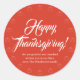 Happy Thanksgiving red script text cute pumpkin Classic Round Sticker