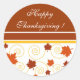 Autumn leaves and spiral pattern with 'Happy Thanksgiving !' greeting. Customisable text.