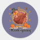 Happy Thanksgiving typography with a Turkey, autumn leaves and pumpkins, to celebrate thanksgiving and be thankful for everything.