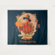 Happy Thanksgiving typography with a Turkey, autumn leaves and pumpkins, to celebrate thanksgiving and be thankful for everything.