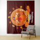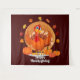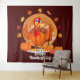 Happy Thanksgiving typography with a Turkey, autumn leaves and pumpkins, to celebrate thanksgiving and be thankful for everything.