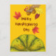 Happy Thanksgiving with Cute Pumpkin and Pine Holiday Postcard