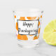 Cheers its a Happy Thanksgiving shot glass. It has a pumpkin pattern background with the phrase "Happy Thanksgiving." Get this for you or someone as a gift.