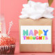 Colourful text reads: "Happy Thoughts"