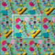 Happy Times Amusement Park fabric, great for so many projects, a fabric kids will love, features bumper cars, roller coasters, ferris wheels, teacup ride, flags banner, popsicles, and cotton candy all on an aqua blue background!