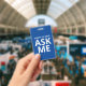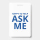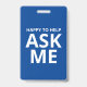 Happy to Help ASK ME Blue and White ID Badge