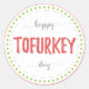 One-inch round labels that say "happy tofurkey day" for all your festive (and vegetarian!) gift-wrapping and card-making needs. Red, green and silver color scheme.