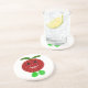 This pretty sandstone coaster features a cute cartoon of a smiling tomato with black eyes, pink mouth and cute little green feet.