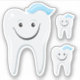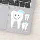 Sticker featuring a happy cartoon tooth with blue tooth paste. Set of three stickers