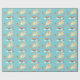 Wrapping paper with a child-like theme. Designed on a blue green background. A happy unicorn frolicks