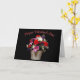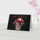 Celebrate Valentine’s Day with timeless elegance. This beautiful greeting card features a vibrant bouquet of red, white, pink, and purple flowers arranged in a rustic wooden basket against a rich black background. A classic “Happy Valentine’s Day” message adds a romantic finishing touch, making this card perfect for a spouse, partner, or someone special who appreciates floral beauty and refined design.