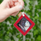 This adorable keychain features a photo of Olive, a cute Labrador mix with her daddy. along with customisable text message on front and back.