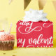 Modern trendy custom wrapping paper featuring happy valentine's day script in white lettering on a red background. Personalize with a name or delete box.