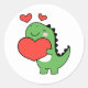 Happy Valentines Day Cute Dinosaur Red Heart Classic Round Sticker