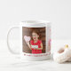 Custom printed coffee mug personalised with your photos and a custom "Happy Valentine's Day, Daddy" message. Add 3 special photos and use the design tools to write your own message for Valentine's Day or any occasion. Click customise it to change the text fonts and colours, move things around or add more photos to create your own unique Valentine photo gift for dad and grandpa!