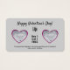 The Happy Valentine's Day Drink Gift Voucher Card template in landscape format is part of the Grey Business Card Designs and Marketing Items Collection. Titled Happy Valentine's Day, the card has placeholders on the front for two heart-shaped custom images with the special described: 'Buy 1' & 'Get 1 Free'. In this case, the photos are each a black and white mocktail photo masked as a heart shape. Below the title is a placeholder for the company logo and along the bottom border are the terms and conditions for this promotion. On the back is space for a customisable QR code, the CTA (call-to-action) 'scan and what to find when scanning. This is followed by the invitation to follow the Valentine Hashtag on your social media presences and a tracking code. The right half features a map excerpt and the physical address in text. Fill in your text, add your specials and logo as well as your location as an image and make the card work for your small business.