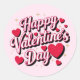 Happy Valentine's Day elegant script pink hearts Classic Round Sticker