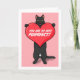 Let someone know they are purrfect this Valentine's Day with this cute illustration of a black cat standing up and holding a large heart with a special message on it.
