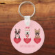 Illustration of three French Bulldog puppies of different colours popping out of hearts dressed in Valentine's Day attire.