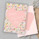 Cute floral pastel pink pattern with a big heart Happy Valentine's Day greeting card featuring a trendy script for mum, grandma, teacher, children, a romantic girlfriend, or wife.