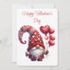 The image displays a stylised gnome with heart-shaped balloons and hearts. The overall tone is whimsical and playful.