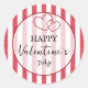 Happy Valentine's Day Heart Stripes Classic Round Sticker
