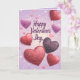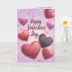 Make this Valentine’s Day sparkle with the "Happy Valentine's Day Hearts Glitter Purple Card." The front features a dazzling glittery purple hearts design, perfect for expressing romance. Inside, two heartfelt messages, "Every day with you is an adventure" and "Thank you for sharing this life with me," convey your love and appreciation. Add a personal touch with a custom name in elegant script font. A thoughtful and unique card to share your feelings this Valentine’s Day.
