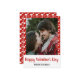 This modern and stylish photo holiday card is a great way to spread love and cheer to your friends and family this Valentine's Day. It features "Happy Valentine's Day" in deep red font, a single photo for you to replace with your own, and a customisable holiday message. The back is red with a white heart pattern. All colours of the text and graphics can be customised to your preference. Make your loved ones smile this holiday season.