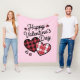 Happy Valentines Day Leopard Plaid Love Heart Fleece Blanket