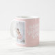 Happy Valentine's Day Lettering Photo Collage Coffee Mug | Cute Valentine's day mug featuring modern calligraphy and scallop border photo frame on blush pink background. Personalise by adding two of your favourite photos. This photo collage mug will be perfect as a gift.