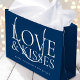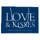 Personalized gift bags add an extra touch of luxury to any gift. This stylish design features "Love & Kisses" in classic typography, and can be customized with the recipient's name and a "Happy Valentine's Day" message. A versatile template that can be adapted for a birthday, bridal shower, bachelorette party, holiday, and other special occasions. Its elegant design is a unique addition to your gift wrap, and a lovely choice for a girlfriend, boyfriend, husband, wife, daughter, or best friend. Available in either a matte or glossy finish. Printed colors: dark navy blue and white — or customize the colors with the design tool.