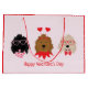 Cute illustration of three Mini Goldendoodle dogs dressed in red and pink for Valentines day. Perfect for pet lovers during Valentines day season.