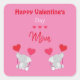 An elephant themed Valentine's Day sticker for mum, this item features cute elephants holding heart balloons. It states "Happy Valentine's Day Mum" in colourful red font on a pink background. The elephants are at the bottom on the right and left. Personalise yours today!
