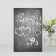 Valentines in chalkboard style with heart and handwritten chalky greetings on the front of the card. The remaining areas are freely available.