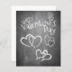Valentines in chalkboard style with heart and handwritten chalky greetings on the front of the card. The remaining areas are freely available.
