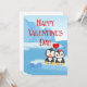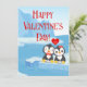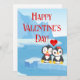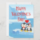 Our Happy Valentine's Day Penguin Pair greeting card is a cute way to share your love on this special day. The front of the flat card features an arctic background, with some ice floating in the sea, and a male and female penguin sitting on some ice. The text reads, "Happy Valentine's Day."