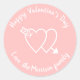 Happy Valentine's Day pink hearts custom script Classic Round Sticker