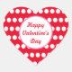 Red background with white polka dots... white centre circle with red lettering... pink accents...