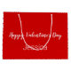 The back and front are red. They have an elegant white script going across the centre that reads 'Happy Valentine's Day'. Under the script, there's non-script display text that can be changed to the recipient's name. The sides are black with a pattern of red dots.