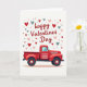 This lovely picture shows a heartwarming scene that captures the essence of Valentine's Day. In the center, there's a classic red pickup truck that stands out with its bright red color against a white background. The truck looks nostalgic with its curved fenders and shiny chrome details, bringing to mind simple, heartfelt gestures of the past. Above the truck, there's a graceful script that reads "Happy Valentines Day" in bold red letters, adding to the message of love. The top of the picture is decorated with lots of hearts in shades of deep red, soft pink, and light teal, creating a feeling of love in motion. The truck's solid presence below and the floating hearts and text above are perfectly balanced, making the whole image feel both festive and sweet. A subtle shadow under the truck adds a touch of realism to the otherwise whimsical declaration of love. Overall, the picture radiates joy and gentle romance, making it a perfect choice for sharing Valentine's Day feelings ❤️💌🍫.