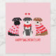 Cute illustration of three Schnauzer dogs dressed for Valentines Day. Perfect for dog lovers.