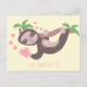 Happy Valentine's Day Sloth Hearts Illustration Postcard
