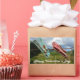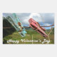 Happy Valentine's Day greetings sticker featuring two aged clothespin in tropical setting in Cuba.
