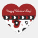 Happy Valentine's Day customisable stickers in fun and modern red, black and white hearts pattern.