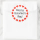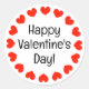 Happy Valentine's Day stickers with red hearts. Custom colour stickers with personalised text. Great for gifts, favours and presents. Round design with circle of hearts.